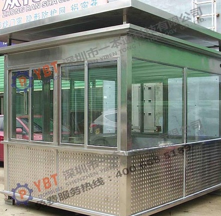 2、采用優(yōu)質(zhì)不銹鋼板作為不銹鋼保安崗?fù)ね庋b飾板,內(nèi)部采用3.0mm厚鋁塑板作為內(nèi)裝飾板;